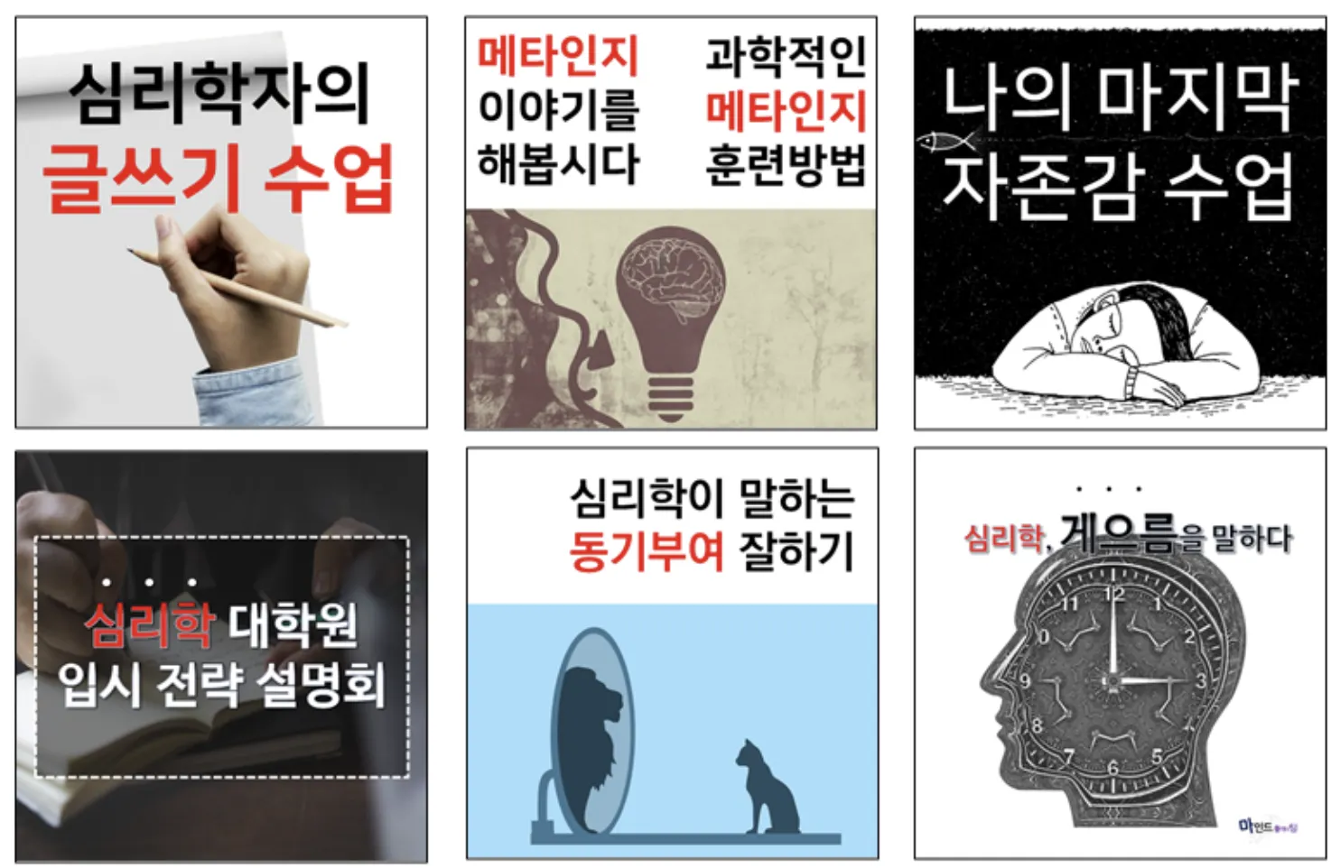 ※ 컨설팅/심리검사 외주개발/심리 자문/제휴/매체 출연/칼럼 기고/출간 등 여러 가지 흥미로운 제안들을 기다리고 있습니다.